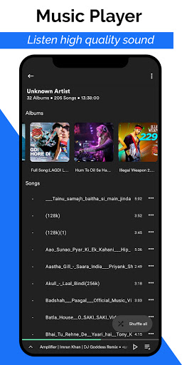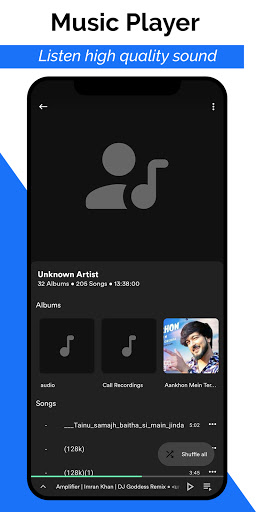 Mp3 player and music player one of the best apps for music and audio player for Android By using mp3 player, music player, you can listen to all audio file types.
