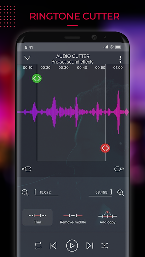 * Cutting editor. Crop or Trim music, cut audio. Optimize size of music, remove unwanted parts. Make smaller audio to set music as ringtone.