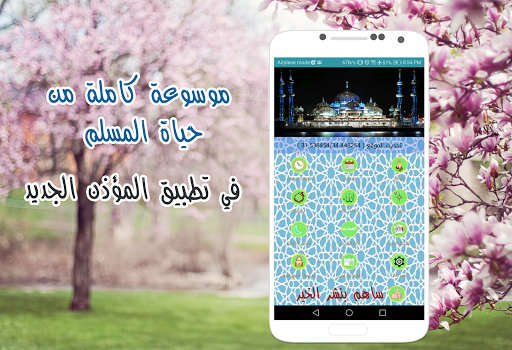 • The "muezzin" screen is designed to be a great masterpiece of beautiful paintings that changed according to time, and out of which a variety of Remembrance to make your tongue wet remembrance of Allah