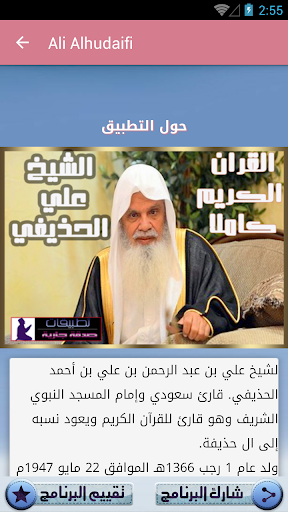 This App contains the complete Holy Quran mp3 audio by the reciter Al Houdaifi
