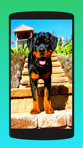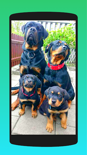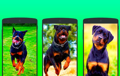 The rottweiler dog breed is characterized by being a large and powerful dog, but docile and a good companion. Its origin is German and its fur is black with brown spots. If you own one of this dog breed, you will love the images of this application.