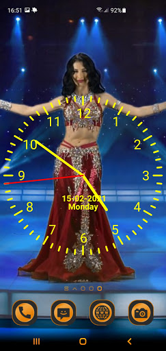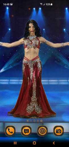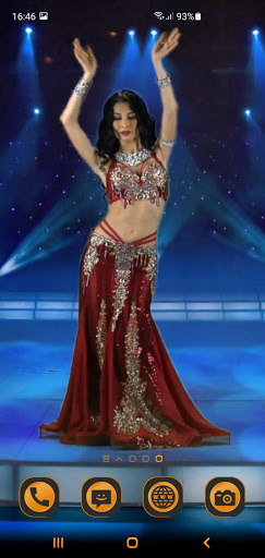 Animated beautiful belly dancer girl will dance on your phone screen around the clock.