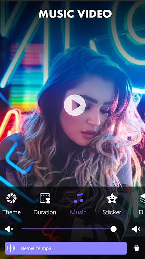 ✤ Insert music for videos by choosing your favorite music files available in the app or your device.