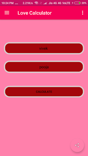 Calculate Love Between You And Your Partner,the calculation depends upon your Name containing letters.