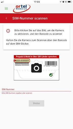 1. Erfassung der SIM-Karte per Barcode-Scan