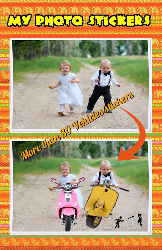 Add animal , cars , cartoon and other creative stickers to your photos.Make photos of kids unbelievable and cool.If your kids are afraid of animals , add animal stickers to there photos and produce love in there heart for animals.Make pictures of your summer holidays perfect by adding these stickers to your photos.