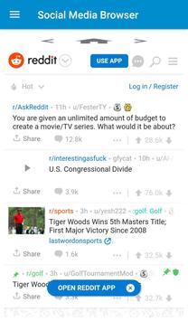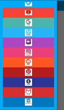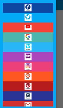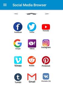 Social Media Browser contains all the famous social networks sites like Facebook, Twitter, Youtube, Google, Yahoo, Instagram, Vimeo, Reddit, Pinterest, Tumblr, Gmail, Vkontakte (Vk)