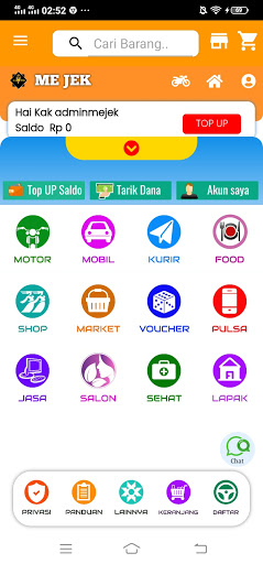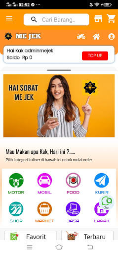 ME JEK adalah aplikasi yang bergerak di bidang jasa transportasi online, aplikasi ini mempermudah dan membantu masyarakat untuk melakukan segala aktivitas.