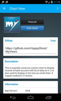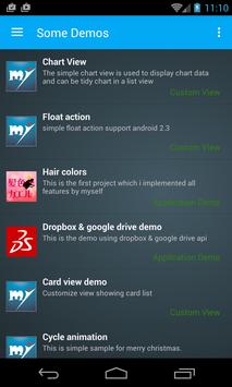 Having 2 application demo, 3 custom view and 3 example code to be ready to view. You can check the github links of some example codes if you are interested in them.