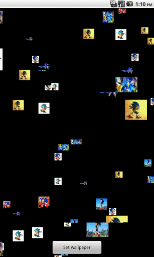 This is a high-end "Sonic The Hedgehog" theme live Wallpaper. It contains a fully customized and UI that everyone can enjoy.features 7 HD quality images Flying.fighting This is a Live Wallpaper, so, here's what you have to do to install it:STEP 1. Tap and holdPress the home button to first go to the homescreen. On the homescreen, just tap and hold on any blank spot until a context menu appears.STEP 2. Tap on “Wallpaper” and then “Live Wallpaper”In the menu or dialog box that showed up in STEP 1, just tap on the “Wallpaper” option, and then the “Live Wallpaper” menu item.STEP 3. Select SONIC THE HEDGEHOG live wallpaper.STEP 4. Tap "Set Wallpaper" to set it or "Settings" to configure it.