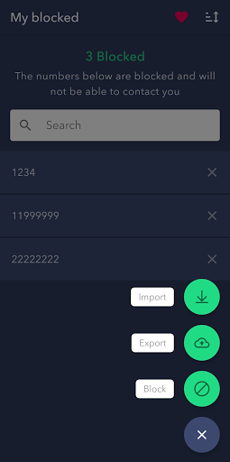 * Share list of blocked numbers by various means, Whatsapp, E-mail.. and more.