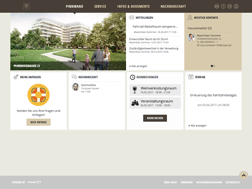 - Demandes de service tels que des détections de dommages ou des services de conciergerie directement via Smartphone, y compris des photos aux personnes responsables Envoyer