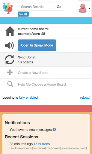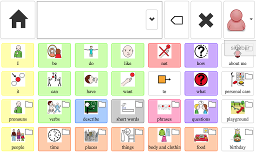 The app includes starter boards for different levels of communication, and boards with large or small buttons can be personalized using the rich symbol set, user-provided images or camera photos, user-recorded audio, speech synthesis, etc.