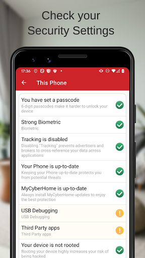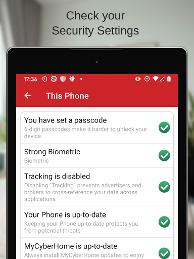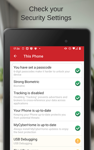 • Your mobile device by checking its common security settings and all your other installed applications;