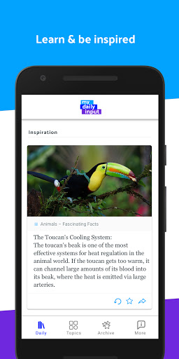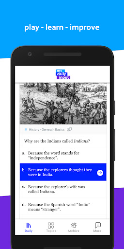 The right topic mix of tricky learning facts and light entertainment is always in your hands. We hope to support you with the My Daily Input app.