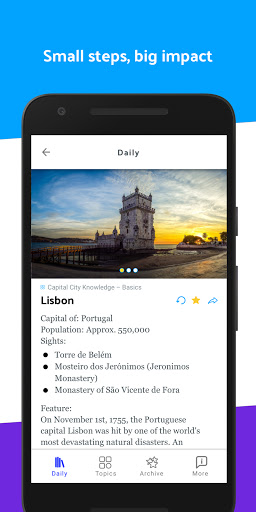 Learn something new every day. Put together your own topics according to your interests and receive small, but excuisite bites of knowledge every day. Improve yourself step by step and without much effort.