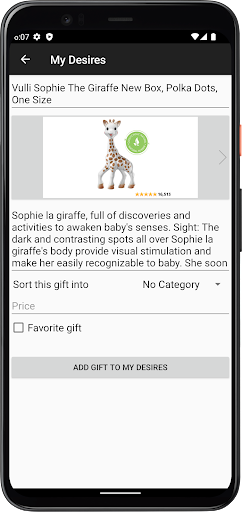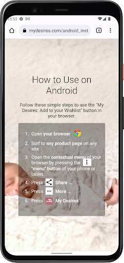 When you find the web page of a product you would like to add to your wish list, simply tap the "Share" button and our app will take care of the rest !