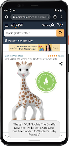 Add a gift from any webpage directly to your wishlist or registry without leaving your browser !
