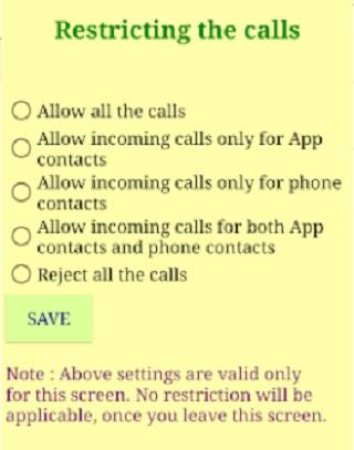 Using this APP, the incoming calls can be restricted. So that we can avoid the unwanted or unknown calls. Also we can make a call from this APP.