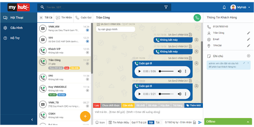 2) Access on the computer at the link https://app.myhub.com/en to start texting & calling
