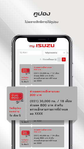 ทำให้คุณไม่พลาดข่าวสารและ สิทธิพิเศษต่างๆทั้งคูปองเช็กระยะ คูปองส่วนลด และโปรโมชัน ด้วยระบบแจ้งเตือนอัตโนมัติ พร้อมเมนูที่ช่วยให้ท่านติดต่อศูนย์บริการมาตรฐานอีซูซุได้สะดวกยิ่งขึ้น ง่ายขนาดนี้ มาเป็นส่วนหนึ่งในครอบครัว my-ISUZU กันนะครับ