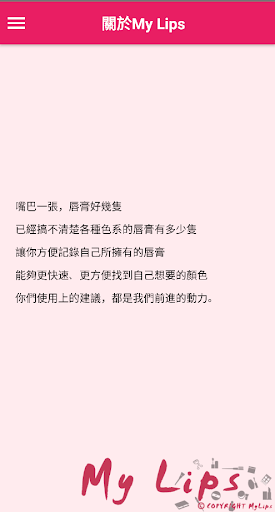 嘴巴只有一張,唇膏卻有好多隻 是不適都要搞不清楚自己買了什麼顏色的唇膏了呢?! 提供一個方便記錄,也可快速搜尋的app 就不怕搞不清楚到底有什麼五顏六色的唇膏了!
