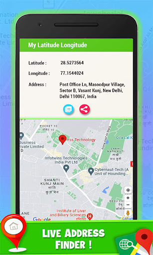 Latitude Longitude Of My Location app for find your current location , here you can share your current location and GPS coordinates with your friends and family .