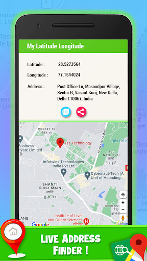 Latitude Longitude Of My Location app you also get in address form of this latitude longitude. Latitude Longitude Finder is simple app that allows your know the lat long of your current location or any location on the map.