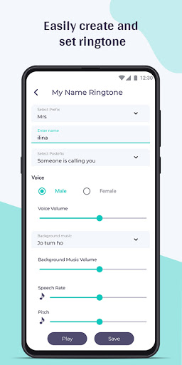 My Name Ringtone Maker free app works even offline & free app to download. Create ringtone using any names. How famous the name can be, you can make it as your incoming call ringtone. No need to browse online websites to create best ringtones. You can use this app to create beautiful rlngtones for your phone. Do you like to hear a voice telling you to pick up your phone, a funny notification sound or any other text ringtones of your own choice with this Celebrity Funny Text Ringtone Maker, each time you get a new incoming call customized tone!