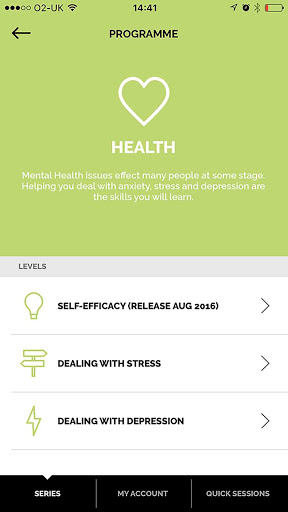 Options for you to continue your personal development after your free sessions on happiness & dealing with stress with a range health and performance topics
