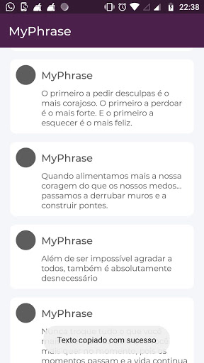 Using the My phrase app you will be able to enjoy countless inspiring phrases for both status 2020 and for creative posts. Get inspired and increase your life style with motivational textual constructions, thoughts, biographies and much more.