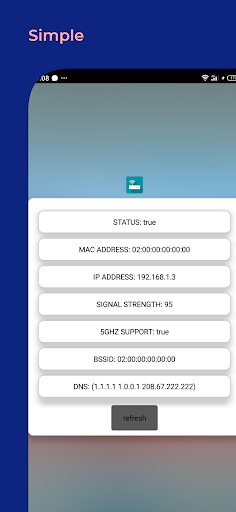My Wifi Info is a tool that allows you to collect many information about your wifi network. this app is a free wifi analyzer that can be use to analyze your wifi's signal strength.in addition to get some useful information like your wifi's mac address, IP address, BSSID, DNS address.beside the ability to check whether your wifi network supports 5GHZ band feature or not