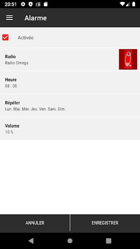 방송을 선택하여 시계 라디오로서의 신청서를 사용하여 시계 라디오로 사용하십시오. 활성화 및 읽기의 양.