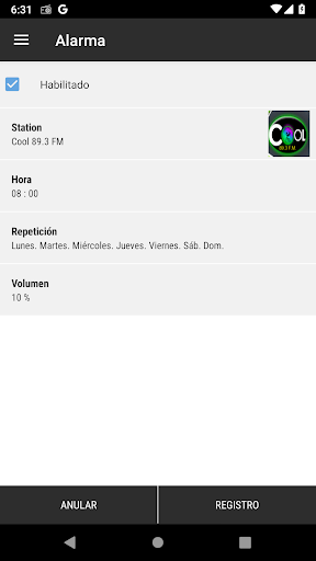 Sử dụng ứng dụng của bạn dưới dạng ANN ALARM Chọn trạm được truyền , những ngày kích hoạt và khối lượng phát lại.