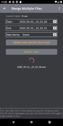 - Multi-file merge. All recorded clips (.wav) can be merged into one single file, on the recording file page ( "Merge multiple files" item).