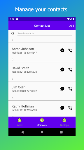 You can text your contacts and send out messages to them, and receive text messages from all over the world. You can also make calls and receive calls just like your mobile phone. We support mobile networks, WIFI, VoIP, and you will enjoy the best communication quality.