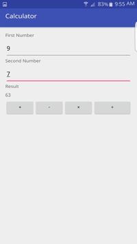 It is very simple calculator for adding,multiplying,dividing and subtracting. Simply type the numbers than press one of the four options you want.