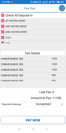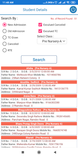 5. New Student Details and Fee Collection in ADMIN.