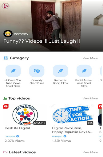 6) It allows a user to watch different genre of videos such like Movies, Short Movies, Music Videos and Celebrity News.