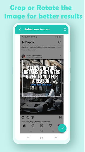 3. Select area in image to scan by cropping/rotating the image and press the tick mark button at the bottom of app screen to start scanning the image by OCR (Optical Character Recognition).