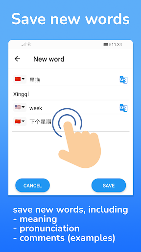 Using this app, you can save new words with meaning, pronunciation, and usage examples. It's easy and very quick to add a new word. You can organize words into lists related to a specific topic or completely different language. The app has the integrated Google Translate service that helps you to translate words and write the meaning and examples.