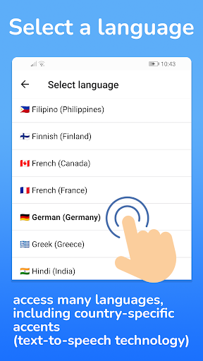 * Multiple language support including country-specific accents (Text-To-Speech technology)