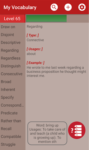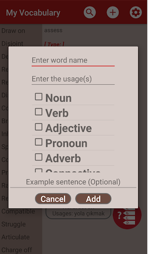 • Adding, editing, writing and working with the words on your own, this application helps you to enlarge your vocabulary, and provides you to keep the words on your SD card with backup and import options. (If you want to put your computer on, you must find backupVocabulary file in device and copy your computer so that your data will be safe.)