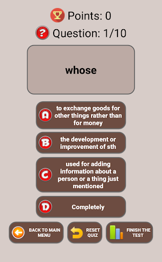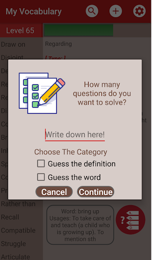 • Thanks to exercise section, You can check your knowledge by answering questions on the words you've added before. No repetitive questions, and every question has priority! Clever, exercise mode! You can solve your mistakes after the test