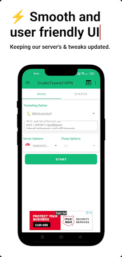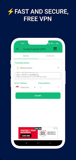 SnakeTunnel is a free mobile VPN App that provides a secured VPN connection while browsing the internet online such us a public WiFi or Network data connection, And also lets you give access to some blocked websites and other internet services.
