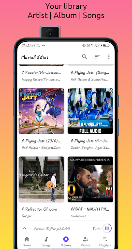 MusicAddict Music player is offline local mp3 player app. It don't support online music download or music streaming.