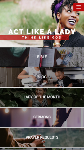 Act Like A Lady Think Like God is a Christian women's empowerment community that helps women around the world get closer to God through our daily spiritual notifications, on the go sermons and the bible. We also created a way for women of all backgrounds and seasons of their lives to connect, share advice and help each other become the best Christian women they could possibly be. Download the Act Like A Lady Think Like God App Today.