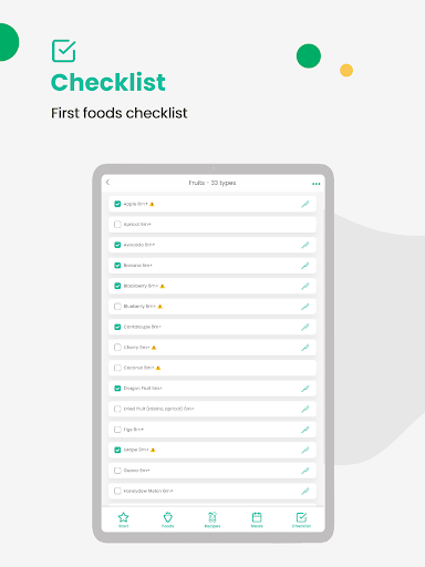 • Checklist with baby's first foods