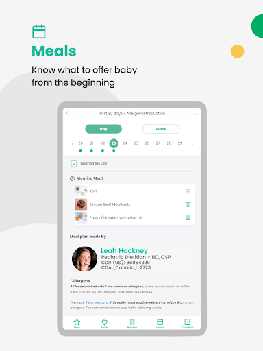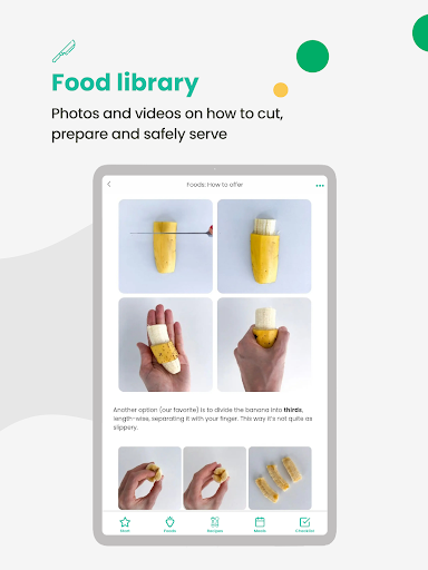 • A Food Library with photos, videos, and tips on how to cut and prepare food safely for your baby