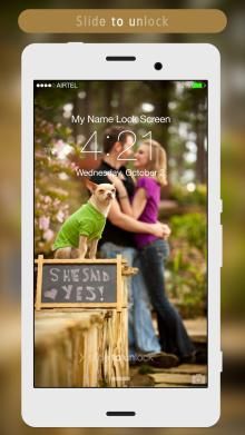 Couple Lock screen lets you customize your mobile lock screen with your name, photo and your background.